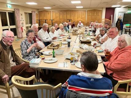 However, we are open every morning and Friday evening in the summer if you fancy popping in for a roll up and or a coffee. You’d be very welcome. Talking about Friday evening, our umbrella is very popular. Not only do we pay our rink fees but we contribute to a pot (held by Neil Pashley who had the original idea) so that, every so often we have a celebration of maybe savouries, cakes, pie and chips and a drink of your choice. This time we had fish and chips ordered and collected by Neil. A really good way to celebrate almost the end of the season!